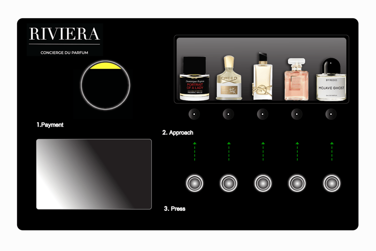 Choose from a refined selection of luxury fragrances and approach dispenser